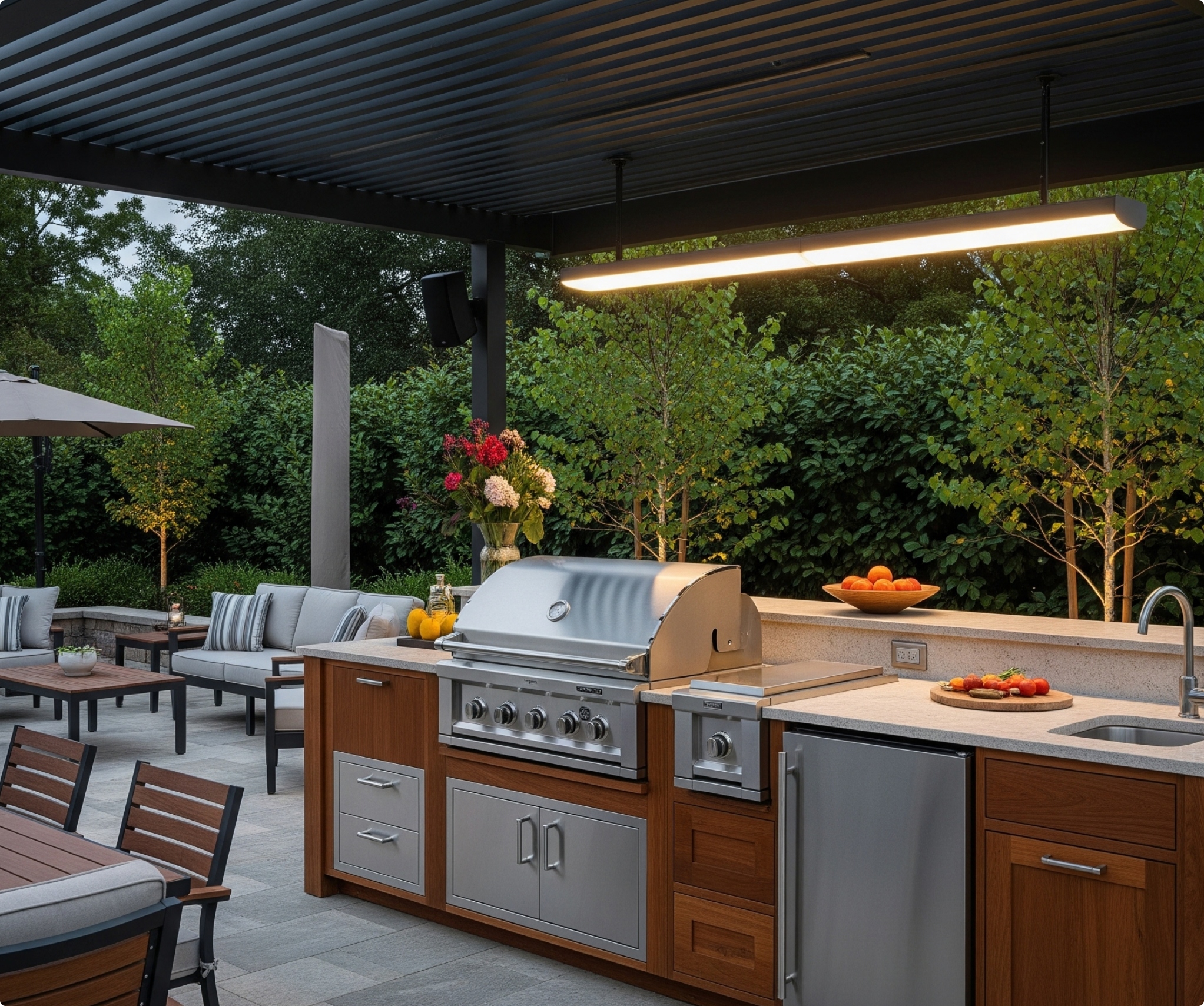 Using high-quality, weatherproof materials, we create outdoor kitchens that maintain their beauty and performance through every season.