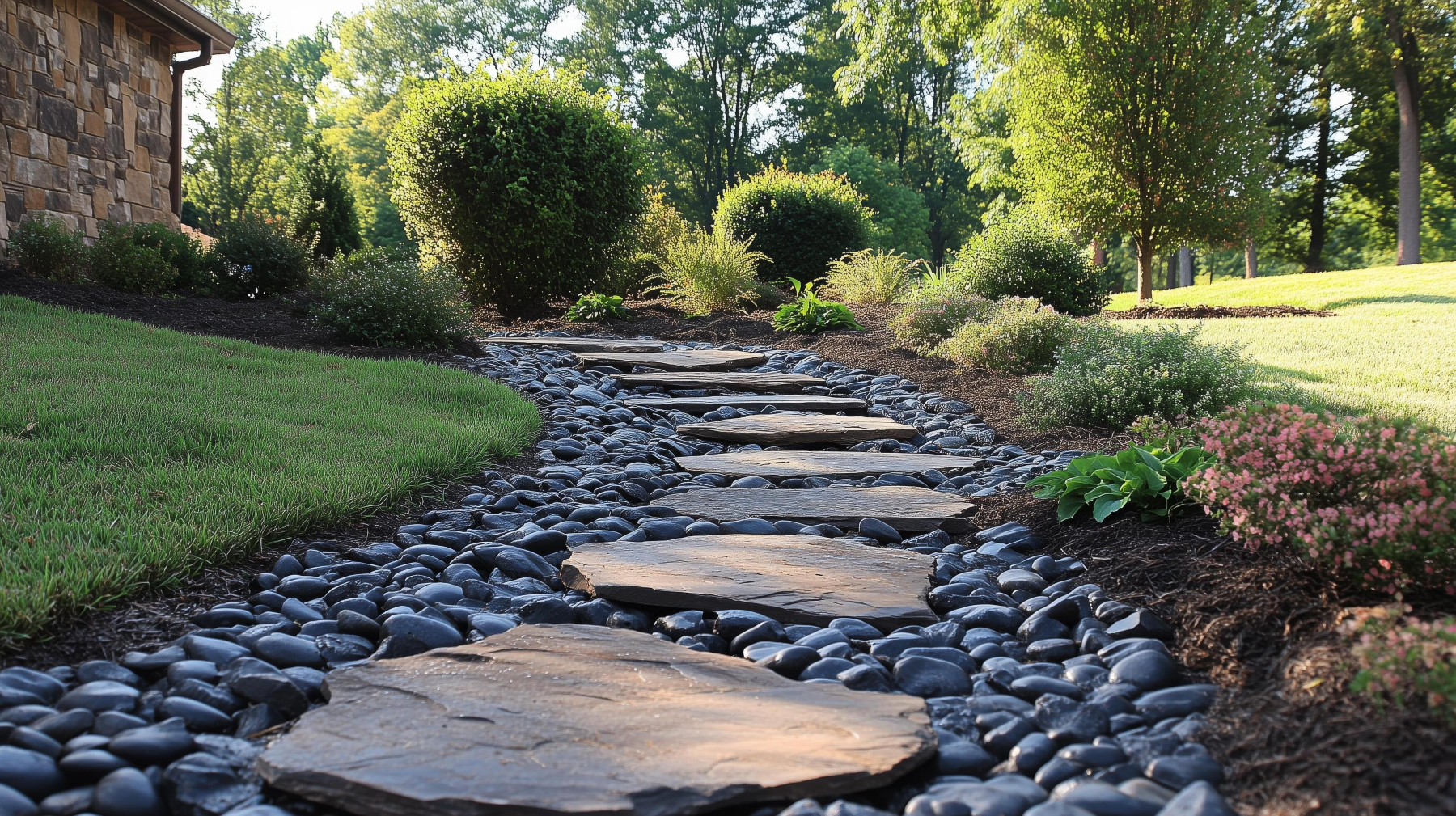 We use gravel and decorative rock to help manage runoff, reduce erosion, and improve soil stability—especially in sloped or high-water areas.